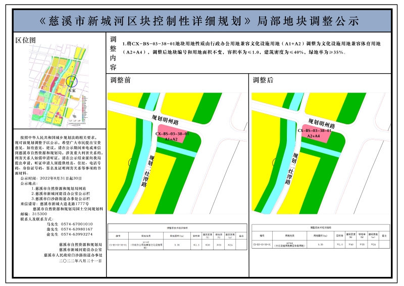 《慈溪市新城河區(qū)塊控制性詳細(xì)規(guī)劃》CX-BS-03-38-01地塊調(diào)整公示