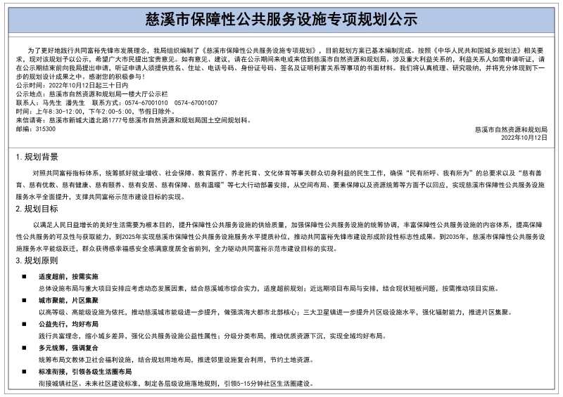 慈溪市保障性公共服務設施專項規劃公示