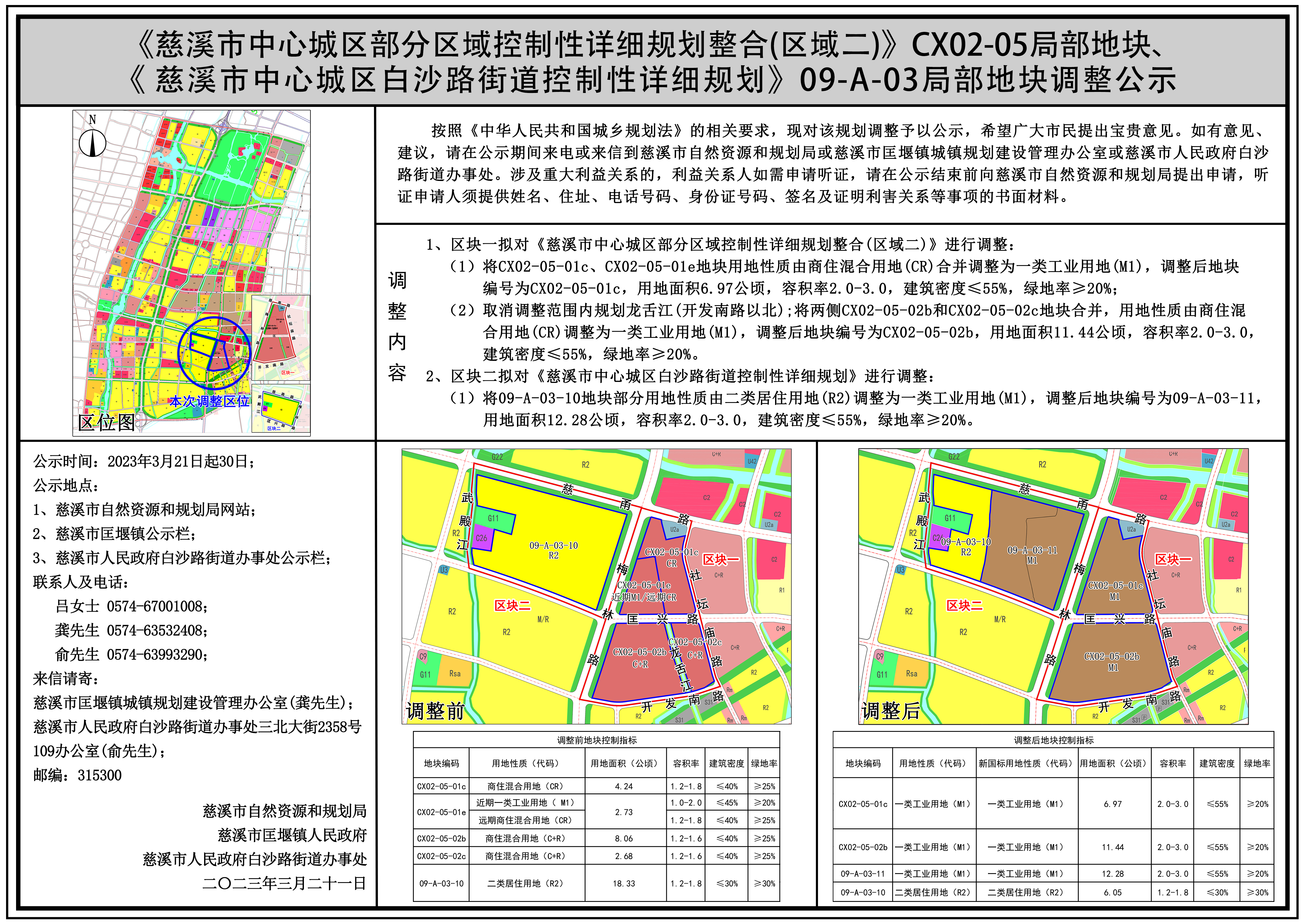 《慈溪市中心城區部分區域控制性詳細規劃整合(區域二)》CX02-05局部地塊、《慈溪市中心城區白沙路街道控制性詳細規劃》09-A-03局部地塊調整公示